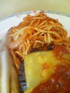 意気消沈でいると、付け合せにナポリタンが付いているのを発見!!!これはラッキー。
