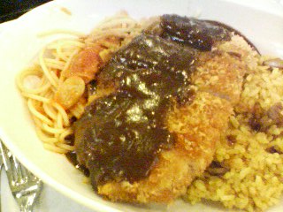 さて、成田空港のナポリタンは、ナポリタン単体ではなくて、ドライカレーととんかつが乗ってるトルコライス風料理でした。。。ナポリタン単体が見つからなかったんで仕方なしかな。。。。