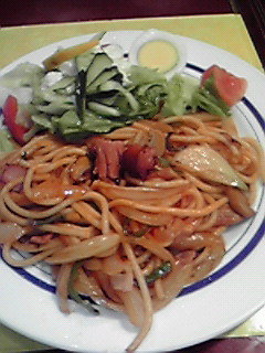 若干気になったのは、サラダが同じ皿なんで、水気がナポまで攻めてくること。でも、それはご愛嬌ということで、許してあげちゃいます。