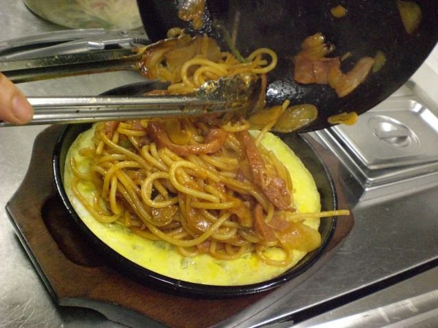 パスタデココと言えば、鉄板系。今日ももちろん鉄板ナポリタン。前回はベーコンエッグだったけど、今日は目玉焼きをトッピング。