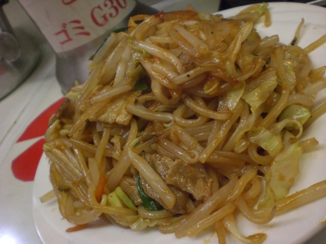 餃子とウーロンハイで、待つこと5分。焼きそば到着です!