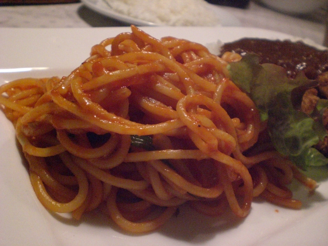 ビッグシェフは、他の街にもあるチェーン店。前に台場店に行ったときは付け合せのナポリタンしかなかったのですが、渋谷店にはナポリタンとしてメニューがあるようです。