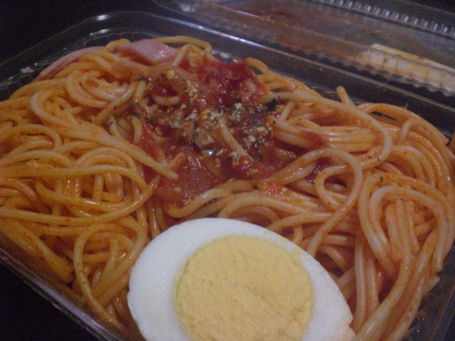 中細麺+たまねぎ+ハム なコンビニのナポリタンです。