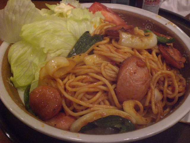 早速実食してみると、、うん、ウインナーでかっ!!炒めしっかりで焦げ付いたナポリタンは全然シャツに飛ばない系。それにしてもウインナーがでかいです!全体の具材も大きいですが、中でもウインナーは群を抜いてます。完全炒め系と相まって大好きな味です。