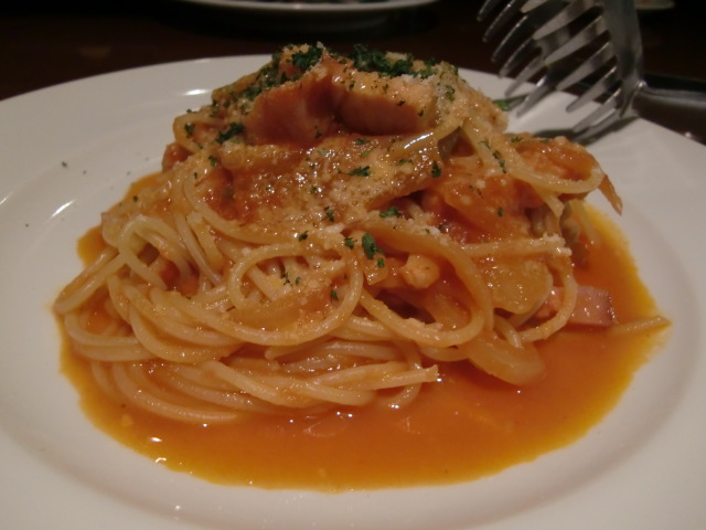 早速実食してみると、、、うん、パスタ!炒めよりも絡めなナポリタンはソースたっぷりシャツに飛ぶ系です。イタリアン的解釈なナポリタンは日式な"スパゲティ"ナポリタンではなく伊式なパスタなイメージです。