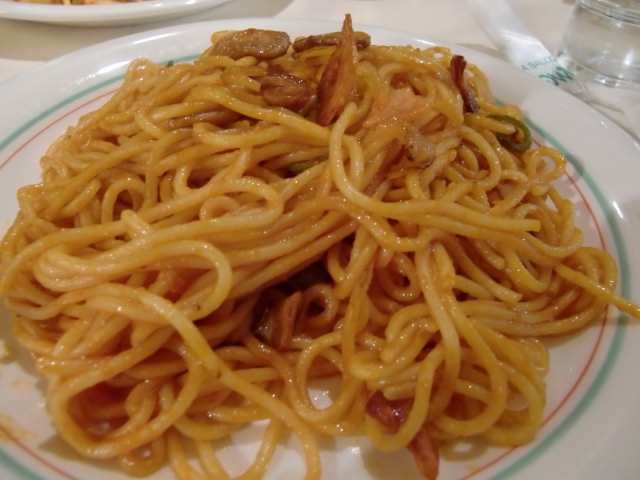 早速実食してみると、、、うん、やっぱりおいしー!炒めしっかりのナポリタンはシャツに飛ばない系。炒め派のワタシとしては、やっぱりこのナポリタン好きです。どこから食べても死角なしのナポリタンです。