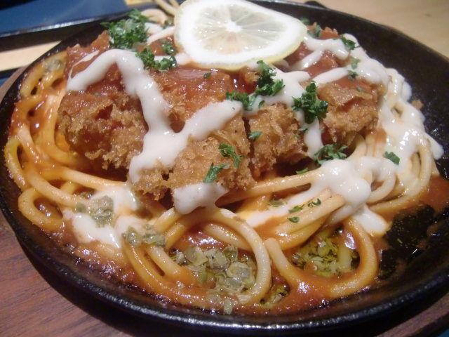 早速実食してみると、、、うん、熱い!炒めよりも絡めな感じのナポリタンは油断したらシャツに飛ぶ系。鉄板系のナポリタンなのでかなり熱い!チキンカツ乗せなのでボリューム満点で、1000kcal越えも納得です。。。