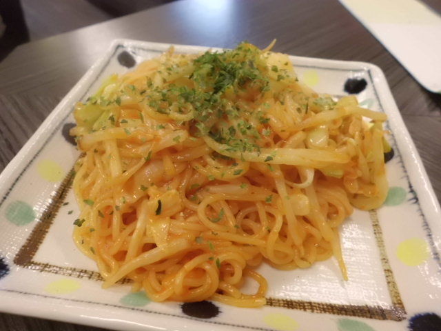 注文終って調理開始。お客さんの会話で炒め音は聞こえません。。。待つこと5分でナポリタン焼きそばの到着です。
