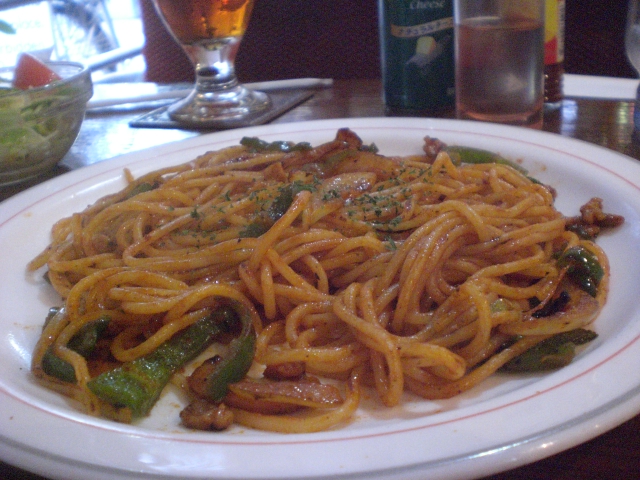 早速実食してみると、、うん、焦げ!!炒めも絡めもしっかりしたナポリタンはシャツに飛ばないね系。ピーマンもたまねぎも豚肉も全部程よく焦げています。やっぱり炒めはいいですねぇ。