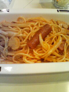 中太麺+たまねぎ+マッシュルーム+ウインナー