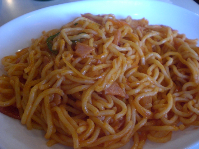 早速実食してみると、、、うーーん。難しい・・・炒め程ほどのナポリタンはシャツに飛ばない系ですが、、具材がちょっと少ない気がします。それと、、麺が細切れになっちゃっていて、フォークに絡めづらいのが難点かも。
