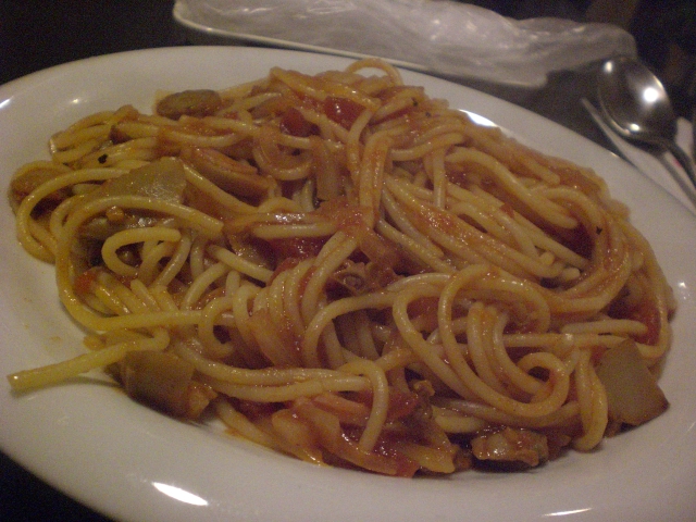 早速実食してみると、、うん、ボンゴレ!!炒めよりは絡めなナポリタンはシャツに飛ぶ系です。ケチャップよりもトマトな味わいにアサリが入ってボンゴレそのままです。メニューはちゃんとナポリタンだったのに・・・